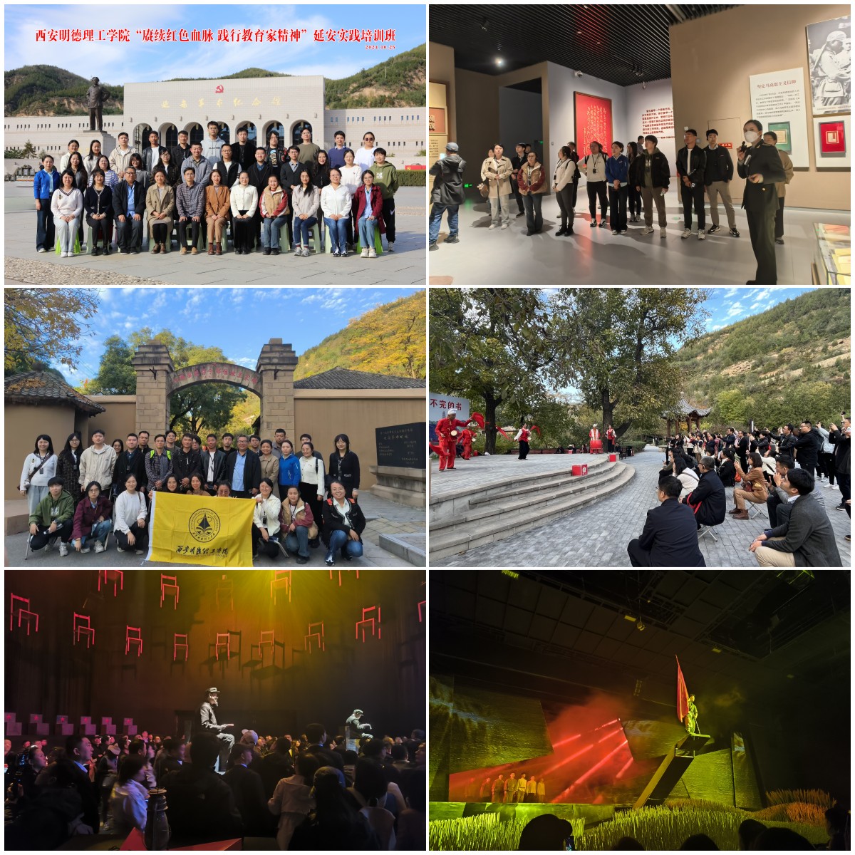 首日,学员们乘坐大巴车抵达延安革命纪念馆,看到1000余幅珍贵的历史照片与800多件革命文物交相辉映,生动形象地再现了老一辈无产阶级革命家在延安时期住窑洞、食小米、驱日寇的辉煌业绩。紧接着学员们满怀敬仰之情,踏上王家坪革命旧址,通过实地探访与细致讲解,深切感悟到革命先烈的伟大精神与不朽功勋。夜幕降临,全体学员共同观赏了大型红色历史实景教育课《再回延安》,剧中感人肺腑的革命故事深深触动了每位学员的心弦,学员们心灵得到了的洗礼与升华。