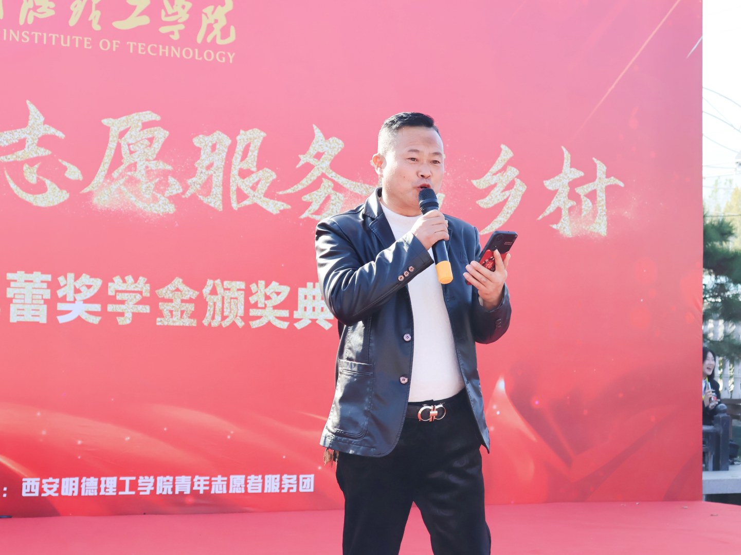 村党支部书记兼村委会主任徐立亲自将一面象征着荣誉与信任的锦旗授予学校青年志愿者服务团,表达了全体村民对学校志愿者无私奉献和辛勤付出的深切感激与高度认可。