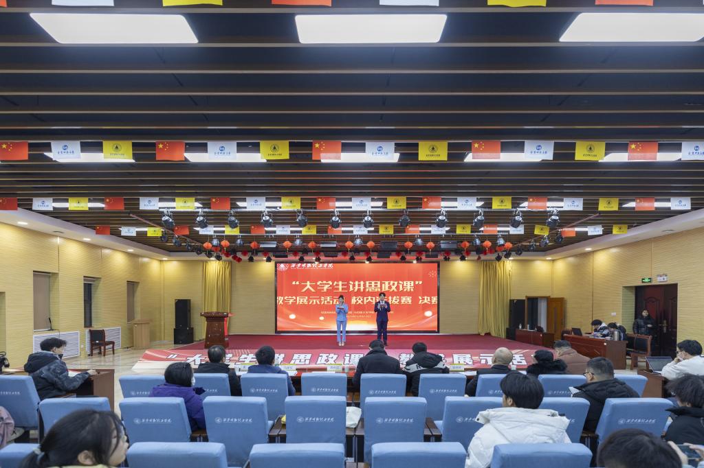 为深入贯彻落实习近平总书记对学校思政课建设的重要指示和新时代学校思政课建设推进会精神,推动我校思政课教学改革创新,12月23日晚,由党委组织宣传部、校团委、马克思主义学院、创新创业学院联合举办的“大学生讲思政课”教学展示活动决赛在建德楼203成功举办。西安邮电大学马克思主义学院副院长马建军、党委组织宣传部副部长张亚平、党委学生工作部副部长童杨梓、马克思主义学院副院长惠斌、信息工程学院党委副书记高长江、智能制造与控制技术学院党委副书记曾凯、艺术与设计学院党委副书记乔建、创新创业学院张国文担任本次大赛评委。思政课教师、辅导员和各学院学生代表200余人参加,比赛由林晨希、张燕龙两名同学主持。