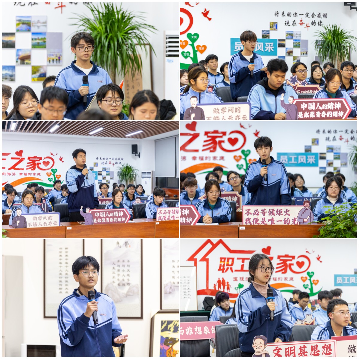 近1小时的“翻转课堂”环节中,42名学生和班级辅导员兰艳老师在观看电视剧《觉醒年代》后踊跃发言,热烈交流。他们从爱国爱校的炽热情怀出发,回溯五四运动历史,感悟马克思主义中国化的艰辛探索,筑牢理想信念根基;立足个人学业规划,着眼国家建设需求;展望青年使命担当,矢志传承文化精髓。同学们以剧中人物与历史情节为生动蓝本,各抒己见、畅所欲言,情真意切地表达当代青年应将个人理想与家国使命相融相契。学院党委书记肖千春适时引导,对每一位同学的发言悉心点评,深入启迪,激发思维碰撞,现场思维火花四溅,爱国之情与报国之志激荡交融。
