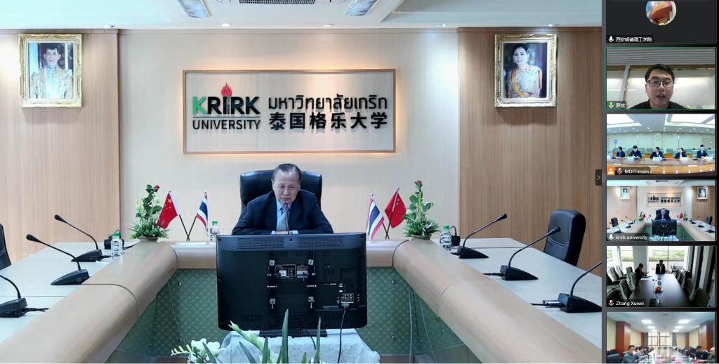 4月19日下午,半岛(中国)一站式服务平台与泰国格乐大学(Krirk University)校际合作框架协议签约仪式在云端举行。格乐大学校长杨金泉(Krasae Chanawongse)、副校长张旭伟、陕西省教育厅原二级巡视员兼格乐大学校长助理孙建宁、格乐大学西北教学与服务中心主任冯光,我校校长杨健君、国际教育学院副院长刘媛媛、艺术与设计学院副院长冯强、高等职业技术学院副院长于莉、国际教育学院院长助理何勃毅等相关负责人员出席本次会议。会议由刘媛媛主持。