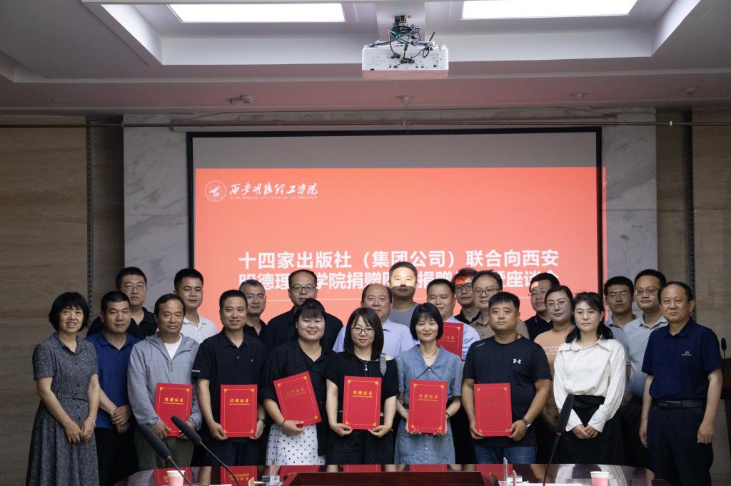 6月9日上午,电子工业出版社等14家出版社与文化企业联合向我校捐赠图书仪式在学校图书馆407会议室举行。西安交通大学出版社教材图书采供中心主任、读者服务部负责人王建安以及14家出版社与文化单位代表,我校常务副校长王志刚,教务处、学校办公室、党委学生工作部、采供中心、图书馆等相关部门老师出席了捐赠仪式。捐赠仪式由图书馆馆长王爱霞主持。