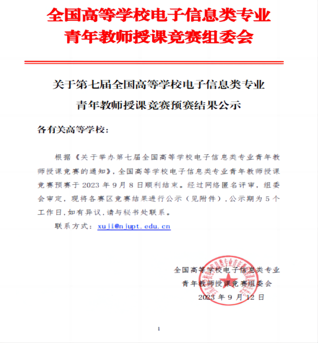 2023年9月12日,第七届全国高等学校电子信息类专业青年教师授课竞赛预赛结果公示,我校信息工程学院四名教师获得华西赛区三等奖。