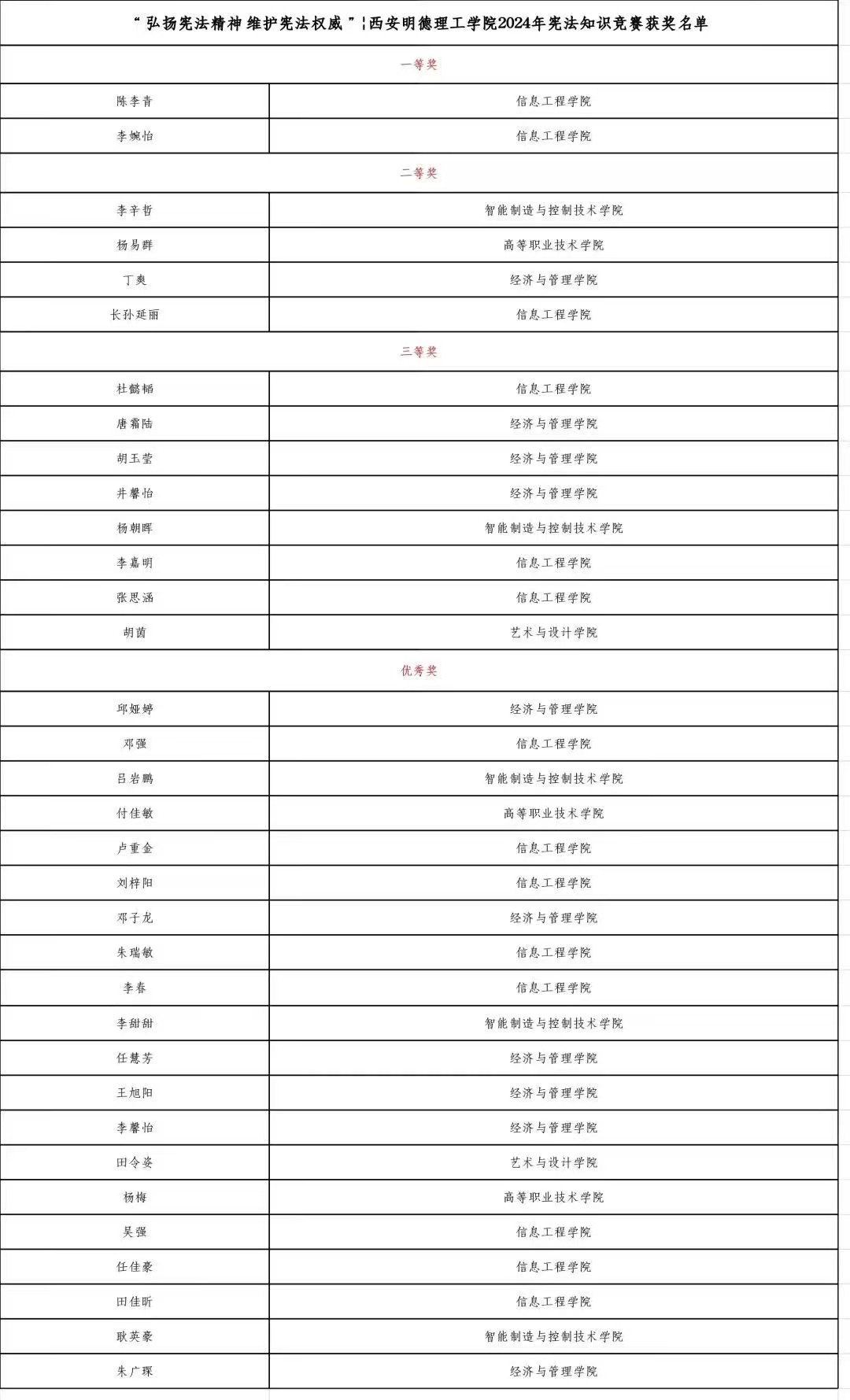 12月3日,举办“弘扬宪法精神 维护宪法权威”为主题的线上宪法知识有奖问答活动。排名在前160名的参赛选手进入决赛。12月5日,线下分别选出一等奖2名、二等奖4名、三等奖8名、优秀奖20名。此次活动激发了学生们学法积极性,不仅提高学生们的宪法意识和法治观念,还拓宽宪法知识。
