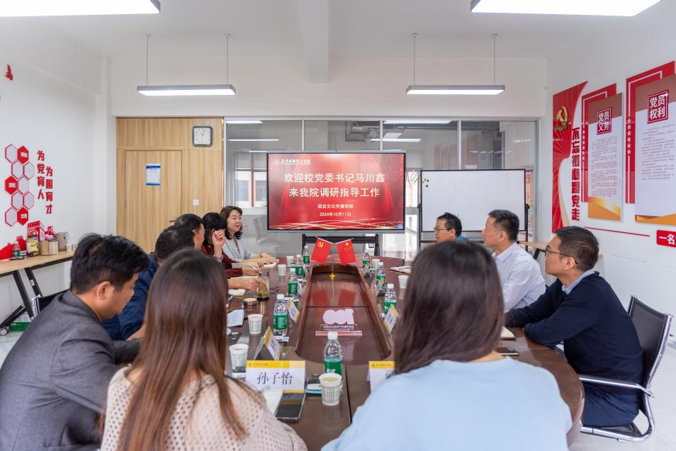 10月11日上午,学校党委书记马川鑫到语言文化传播学院调研指导工作。校党委组宣部副部长张亚平,组织科科长柴林陪同调研。学院党政班子成员、支部书记参加会议。会议由学院党委书记赵旭东主持。
