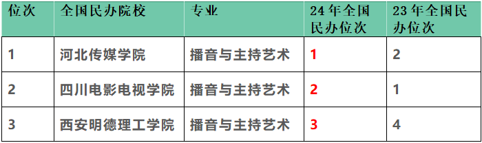 表1 软科中国大学播音与主持艺术专业民办全国前3位排名