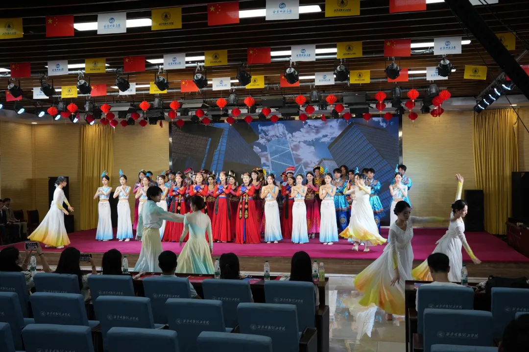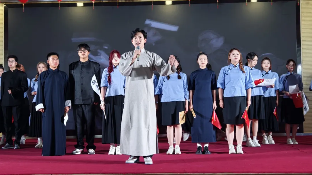 演出在一曲欢快激昂的民族团结舞中拉开序幕,舞台上,灯光璀璨,光影交错间,每一位播音与主持专业的学生都化身为传递情感、讲述故事的使者。他们用或温柔细腻、或激情澎湃的声音,展现了扎实的专业功底和无限的艺术创造力。