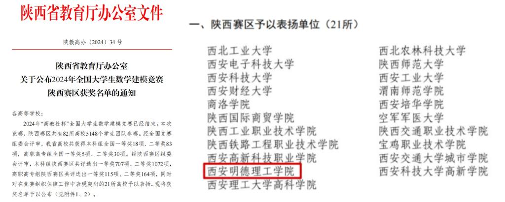 12月5日,2024年“高教社杯”全国大学生数学建模竞赛成绩揭晓。经过激烈的角逐,我校共获得本科组国家二等奖2项,陕西赛区省一等奖13项,二等奖18项;专科组国家二等奖1项,陕西赛区省一等奖4项,二等奖2项,并成为...