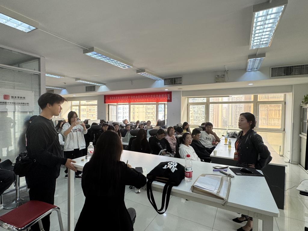 在参观学习活动中,首先,陕西朗熙财务管理有限公司人事总监席彦宏对各位师生的到来表示热烈的欢迎,并为学生详细地介绍了公司的企业文化、发展历程、业务范围、工作模式、会计团队各岗位工作内容、会计运营服务流程、会计职业未来发展规划、就业方向等,让学生对于财会专业有了更为清晰的认识。
