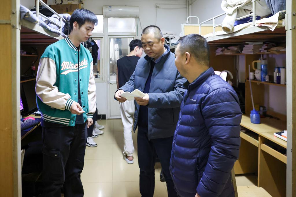 为加强学生宿舍安全管理,排查宿舍各类安全隐患,12月4日晚,高等职业技术学院党总支书记王庭良、副书记王飞以及全体辅导员,联合学校“一站式”学生社区开展了一场全面细致的安全与卫生检查活动。此次检查涉及学院各个学生宿舍楼,覆盖全院学生宿舍。
