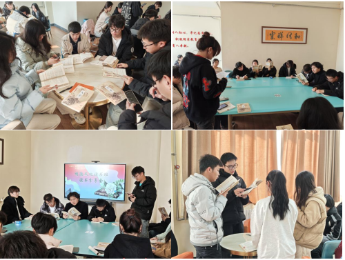 本学期“明德文化读书班”有固定成员30余名学生,读书分享会中精彩纷呈,大家以儒家经典《大学》作为阅读书目,开启了一场中华优秀传统文化的溯源之旅。读书会成员们热情洋溢,踊跃参与,自发分成五个读书小组。依次朗读书中五段经典内容,朗朗书声回荡,古韵四溢。朗读结束,成员们积极分享感悟,有的结合生活谈品德修养,有的立足当下论家国责任,新颖观点不断涌现。在热烈的思想碰撞下,《大学》的智慧展露无遗,成员们共同感受中华优秀传统文化魅力的同时,也进一步提升了文化自信。