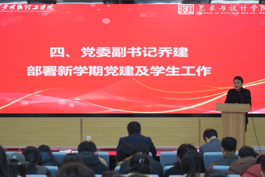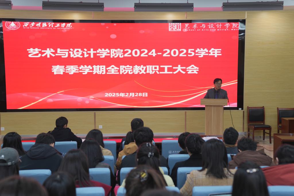 为深入贯彻落实学校相关会议精神,统筹安排部署2025年重点工作,开启艺术与设计学院高质量发展新征程,2月28日下午,艺术与设计学院在建德楼201召开2024-2025学年春季学期工作部署会。学院院长苟秉宸、副院长冯强、党委副书记乔建及全体教职工齐聚一堂,共同展望新学期的目标与方向。会议由冯强副院长主持。