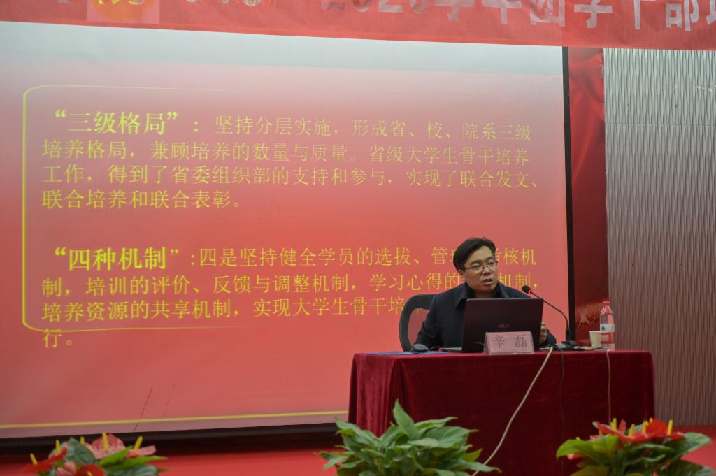 11月13日晚,学院团委特邀共青团陕西省委基层组织建设部辛磊在建德楼203为学院各级团学干部作了以《坚守梦想 不忘初心》 为题的专题培训,学院党委副书记沙治邦参加了大会。