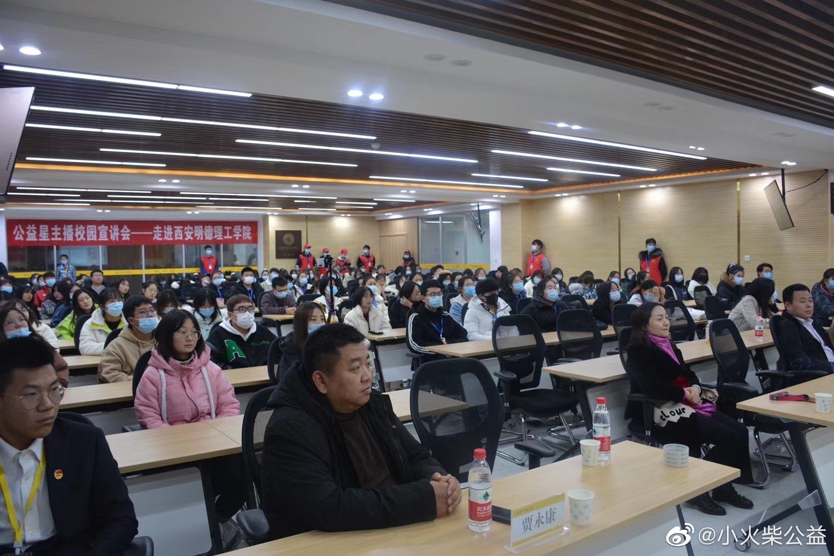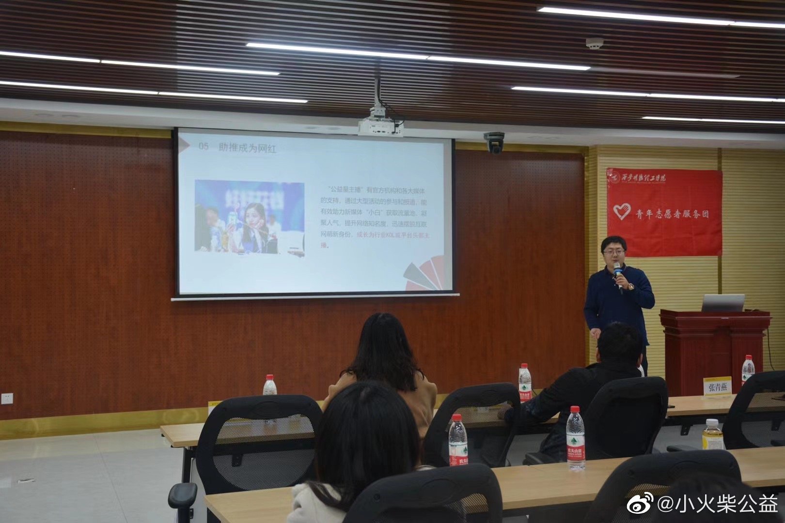 11月27日,由陕西省志愿者协会、西安市志愿者协会主办的,学院团委、青年志愿者服务团承办的“公益星”主播宣讲会在明志楼311学术报告厅举行,陕西省青联常委,新闻出版与新媒体界别秘书长、西安志愿者协会秘书长王大鹏,陕西青年志愿者协会副会长、中国志愿服务高级培训师杨梓颢,陕西省青年电商联合会副会长陈梁, 陕西青年志愿者协会副秘书长、西安市小火柴志愿者服务中心理事长贾永康,资深电商短视频直播运营总监叶璐应邀参加会议。