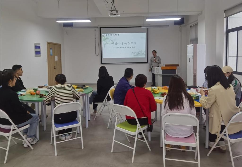 线上线下各类招聘会、访企拓岗全员促就业;春耕夏耘,恰是奋斗时!近期我校就业工作扎实、稳步、高效开展,正值2022届毕业生就业工作的关键期,一线辅导员工作辛苦、承担着多方的压力,焦虑的心情时有流露。为缓解我校毕业班辅导员心理压力、提升心理素质、舒缓工作情绪。4月29日上午,就业办公室邀请我校心理健康教师薛飘老师为毕业班辅导员作了题为“缓解心情快乐工作”的心理减压团体辅导。招生就业中心副主任王东辉参加了本次活动。
