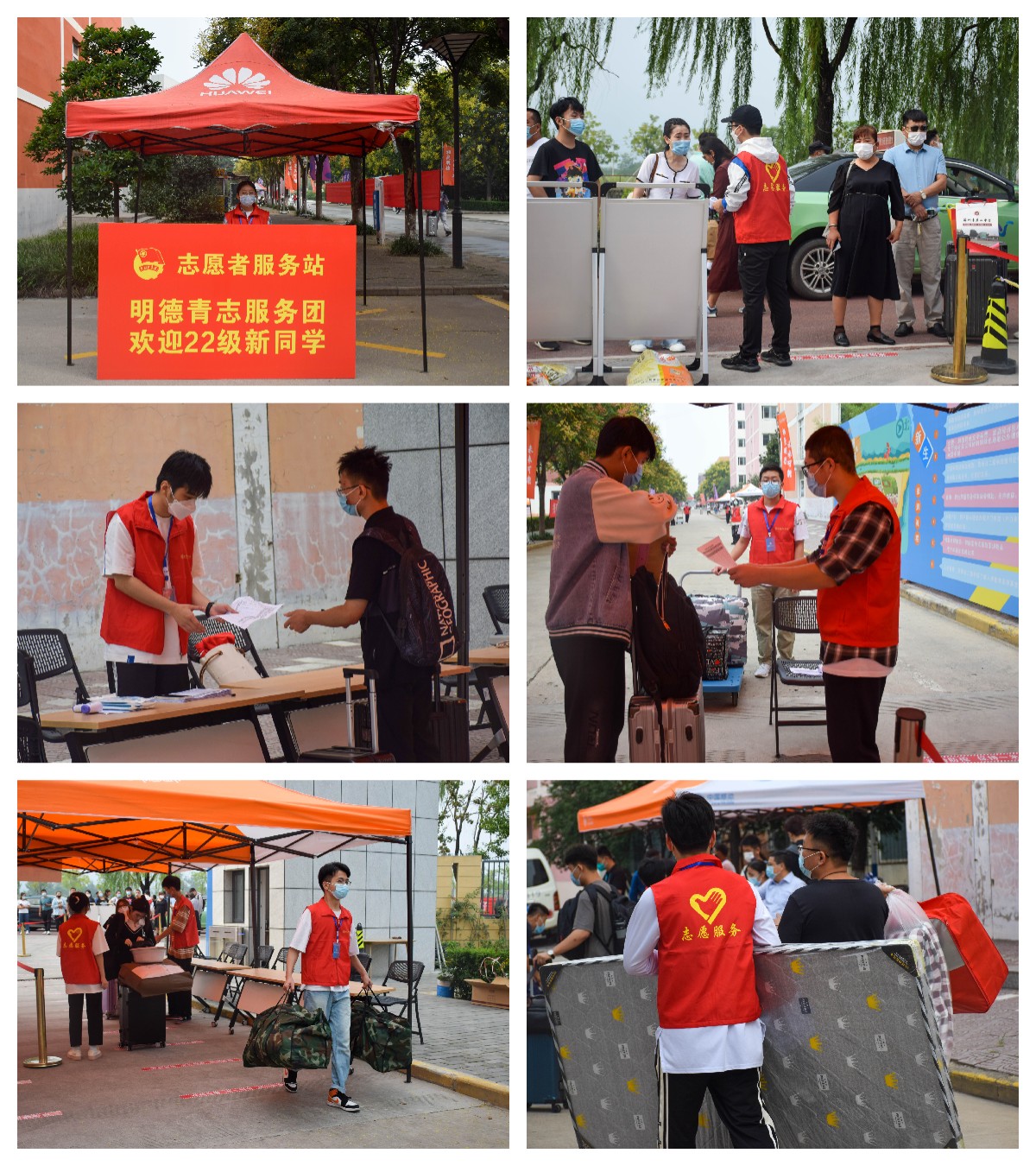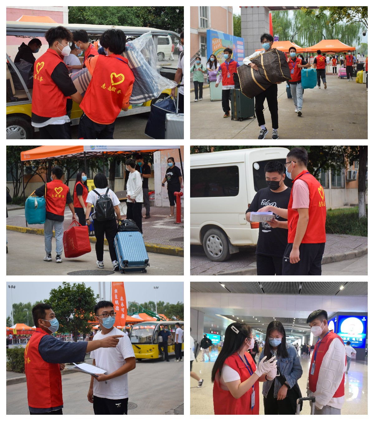 青年志愿者服务团在校园设置了多处志愿服务点,随时为新生答疑解惑,提供帮助。校外志愿者在北客站、西安火车站、咸阳机场以及地铁口处做好新生接待、引导乘车及相关资料收集等工作。学校安排专车接送,实现闭环到校,保证了学生安全,让萌新们感受到了“明德温度”。校内志愿者搬运行李热火朝天,汗流浃背,争先恐后;志愿者先锋队、国旗护卫队校园巡逻提醒同学们配戴好口罩,做好个人防护,保障同学的人身安全。志愿者用行动释放着青春的热情。