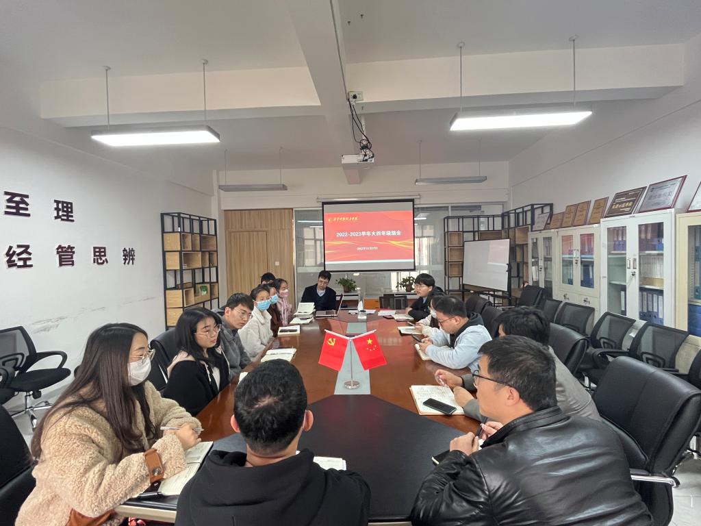 会上,毕业班辅导员依次进行自我介绍并且对目前毕业生情况进行汇报。对于各别开设专业对口企业少、学生“慢就业”、企业缩减招聘计划、面临结业预警学生的情况掌握以及所学课程与工作面试冲突等问题进行了探讨。