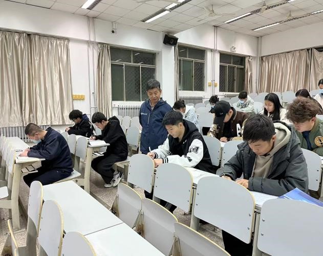 本次物理实验技能竞赛分为初赛和复赛,初赛(笔试)于3月18日晚上7:00至9:00,在6号楼102举行。物理教研室张孟、刘晓军老师进行了监考。笔试题目包含误差理论与数据处理、实验设计等,充分考察了学生对大学物理实验基础知识的掌握程度。