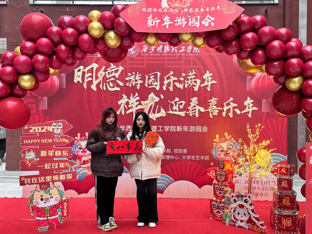 嘉年逢盛世,祥龙踏舞来。1月1日,学校两校区举办“明德游园乐满园 祥龙迎春喜乐年”元旦游园会活动。游园会分为“金龙贺岁”合影区、“齐乐龙龙”互动区、“龙运当头”抽奖区、“龙腾虎跃”挑战区、“八面灵龙”diy区、“龙重登场”新年时光路演六个活动区域。