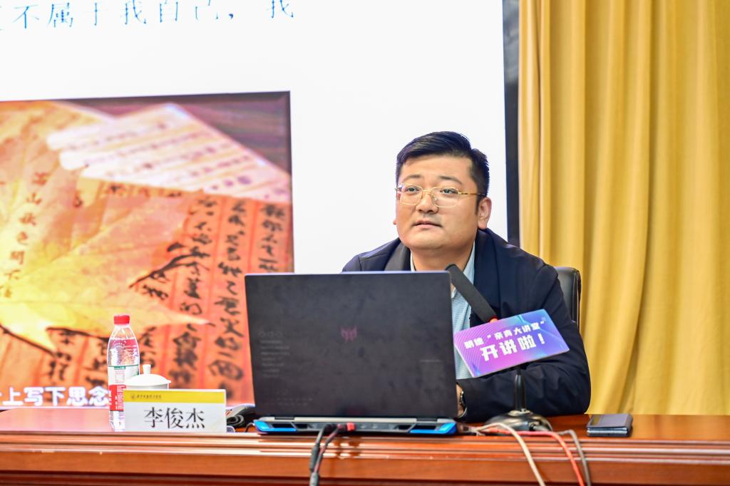 3月27日,学校第44期明德“亲青大讲堂”在建德楼203报告厅举行,华商网副总编辑、华商报社团委书记李俊杰受邀半岛平台作《新时代下,如何传播党的理论、团的声音兼谈中国共青团的百年光辉历程》专题讲座。