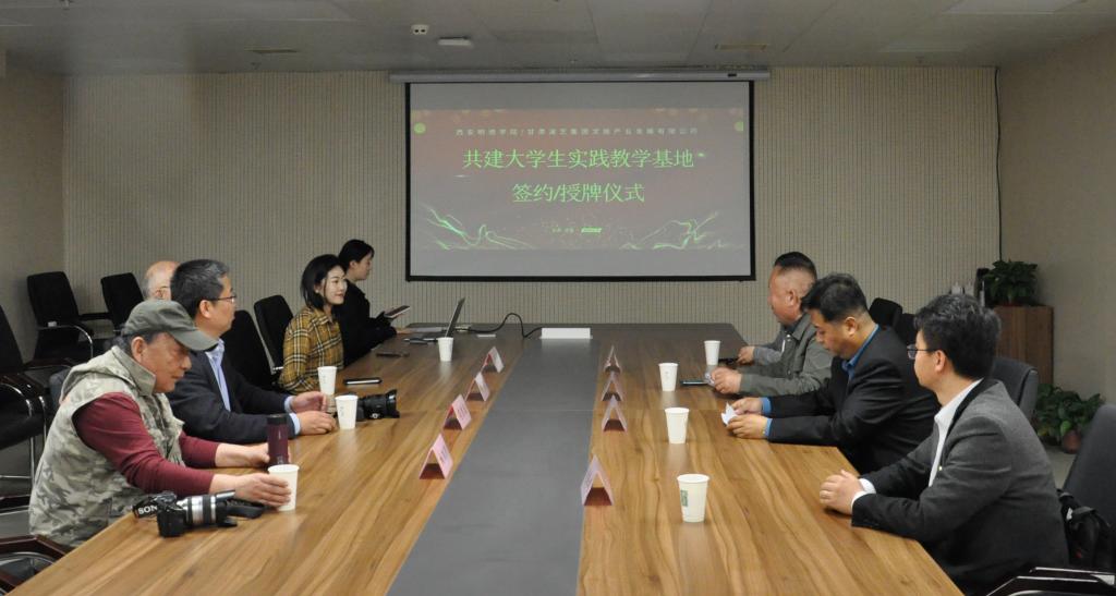 4月19日,半岛(中国)一站式服务平台艺术与设计学院院长苟秉宸、党委书记兼行政副院长雷宇和特聘教授柏雨果一行前往甘肃演艺集团文旅产业发展有限公司考察调研、签约校企合作并开展访企拓岗专项行动。甘肃演艺集团文旅产业发展有限公司副总经理张荣庆、敦煌艺术应用推广研究中心负责人赵虎、副主任赵俊鹏和西北区总监罗树熙出席活动,在当地参演电影《沃野》的著名表演艺术家许还山应邀出席会谈,该片由我院影视摄影与制作专业教师担纲编剧和导演。