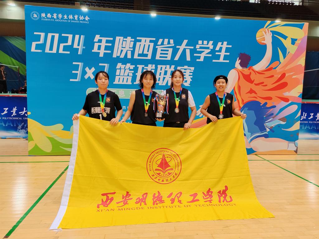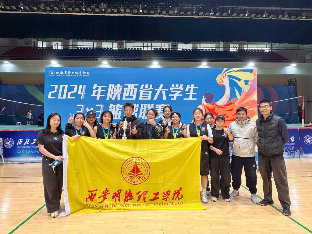 2024年11月3日下午,由陕西省学生体育协会主办,西北工业大学承办的2024年陕西省大学生3×3篮球联赛在西北工业大学长安校区圆满落幕。比赛共有来自全省45所高校,115支队伍,460名运动员参赛。我校女篮李鑫、闫慧群、段柯震三位老师的带领下,派出马燕、张鸣喆、刘卓婷、李海依四人出战。经过多轮激烈角逐,最终荣获亚军,这一成绩不仅彰显了队员们的篮球技艺,更展现了明德学子坚韧不拔的精神风貌。