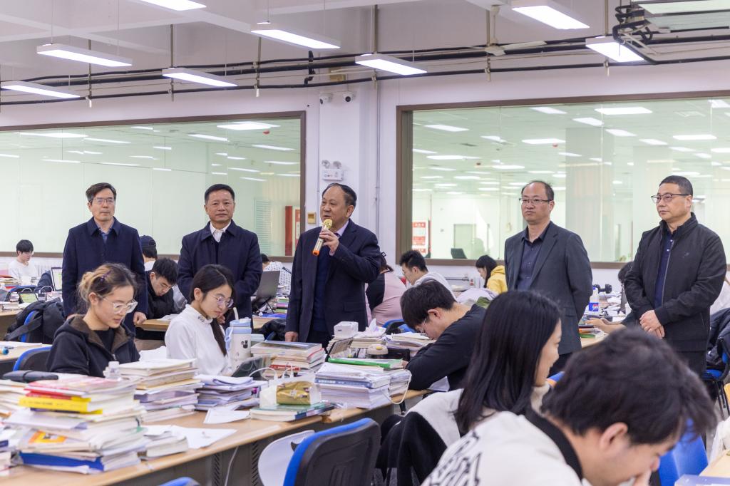 王志刚校长代表学校领导班子及全体师生,向正在紧张备考的学子表达了深切的关怀与问候。他鼓励即将步入考场的学子们,要坚定信念,勇往直前,并寄予厚望。王志刚校长提出了“三心、三力”的备考建议:“三心”即树立坚定的自信心,相信自己定能成功,“一研为定,定为研一”;保持平和的心态,从容应对;同时,要细心准备,细致审题,认真答题,仔细检查。“三力”则是要以扎实的专业知识作为实力支撑,以不屈不挠的毅力为动力,以饱满的精神状态确保有充沛的精力,全力以赴迎接这场人生中的重要考试,以最佳状态迎接挑战,争取一战成硕。