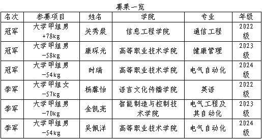 除了三位金牌得主的辉煌成就外,我校跆拳道队的其他参赛队员同样以出色的表现赢得了广泛的赞。其中队员杨馨怡巾帼不让须眉,经过四场鏖战最终摘得一枚铜牌。队员金凯亮无奈同连续七年全国冠军获得者一组。遗憾摘得铜牌。队员吴佩洋作为大一新队员,在短短2个月里进步迅速,最终拿下一枚铜牌。