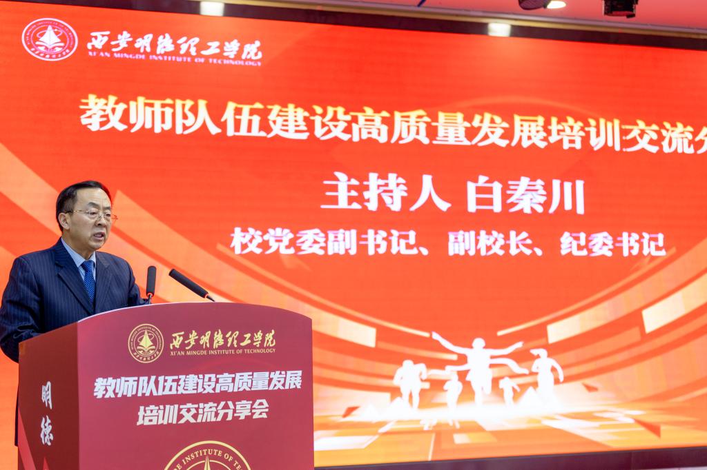 2024年12月27日上午,教师队伍建设高质量发展培训交流分享会在建德楼203报告厅举行。校长王志刚,党委书记马川鑫,集团公司副总裁林东,党委副书记、副校长、纪委书记白秦川,党委副书记、副校长刘星,副校长陈鹏、王斌宁及学校中层干部、教师、辅导员及教学管理人员等300余人参加本次会议。会议由学校党委副书记、副校长、纪委书记白秦川主持。