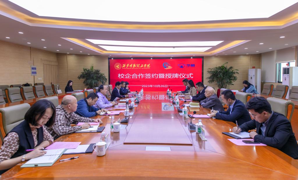 10月26日下午,粤港澳大湾区经济产业研究联合会理事长、广东省华融产业研究院院长梁松寿,粤港澳大湾区经济产业研究联合会陕西分会理事长李明富等一行6人莅临我校,签订校企合作共建协议并授牌,我校校长王志刚、副校长白秦川、财务总监马晓军以及高等职业技术学院领导班子和相关成员参加本次签约座谈会。