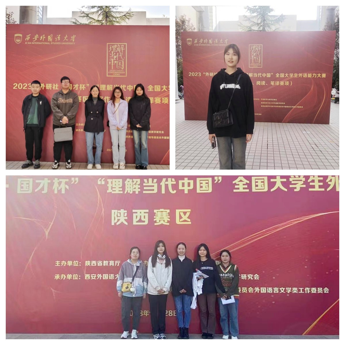 10月28日, 2023“外研社·国才杯”“理解当代中国”全国大学生外语能力大赛演讲、阅读、写作、笔译四个赛项的陕西省赛区决赛在西安外国语大学长安校区顺利举行。我校选手共获金奖2项、银奖1项、铜奖8项,成果丰硕。其中,2021级英语专业刘璟怡、仝乐同学以演讲赛前十名的优异成绩荣获陕西省赛区金奖,双双突围并晋级国赛,再次刷新我校该项赛事上的最佳记录,使我校成为本届演讲赛陕西省赛区唯一一所拥有两项金奖的民办高校。2022级计算机科学与技术专业薛安睿同学获阅读赛银奖,是非英语专业学生在该赛事上取得的突破性成绩。