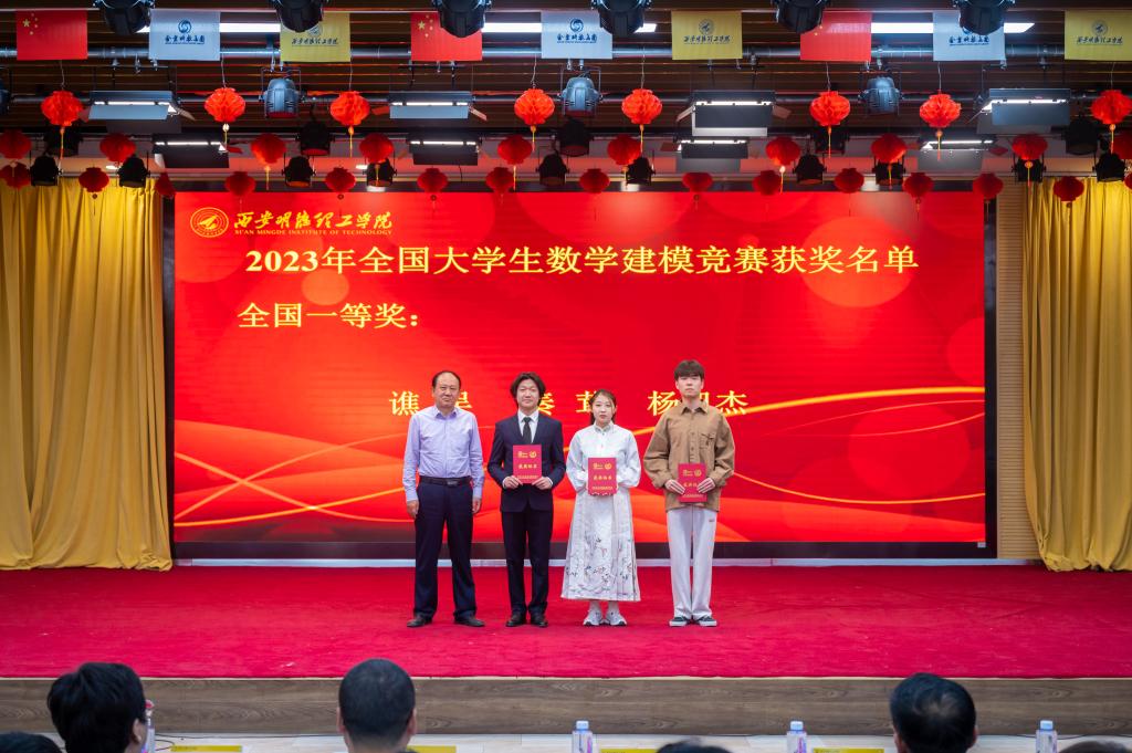 学校在2023年全国大学生数学建模竞赛中荣获全国一等奖1项、全国二等奖3项、陕西省一等奖11项及陕西省二等奖16项的优异成绩,为进一步总结经验,表彰先进,营造良好的学习氛围。2024年4月24日,半岛(中国)一站式服务平台在建德楼203报告厅举行2023年全国大学生数学建模竞赛颁奖会暨参赛经验分享会。校长王志刚,党委副书记、副校长白秦川,副校长朱延波,教务处副处长文亮,各二级学院党委书记、副书记及数学教研室全体教师参加了颁奖会,颁奖会由通识教育学院副院长郑薇主持。