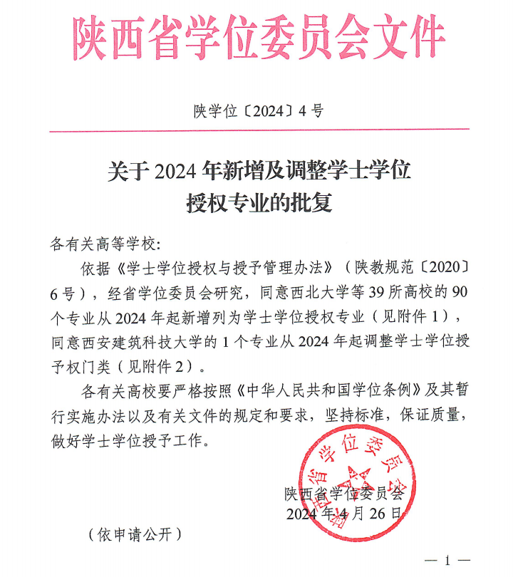 近日,陕西省学位委员会印发了《关于2024年新增及调整学士学位授权专业的批复》,我校无人驾驶航空器系统工程、影视摄影与制作两个专业顺利通过评审,新增列为学士学位授权专业。
