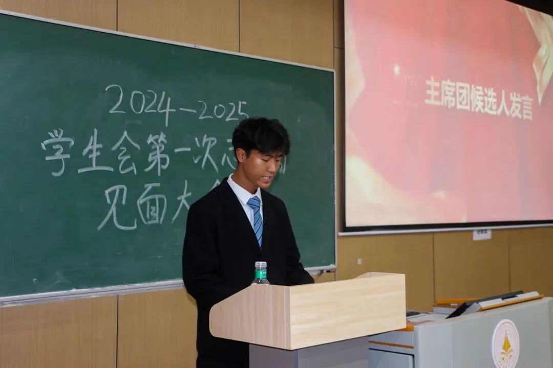 首先,由四位主席团成员候选人王楠、李迪、江灵烁、李伟民依次上台发言,对此次加入学生会的志愿者们表示热烈欢迎!介绍了学生会的宗旨和工作内容,以及校学生会的六个部门,并对新加入学生会的志愿者们给予期望,希望他们能够积极投身于学生会的各项工作,为学校的发展以及学生会的成长贡献自身力量。