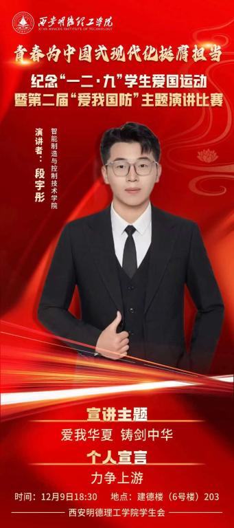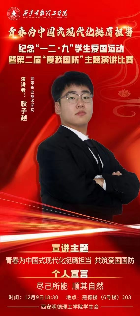 青春为中国式现代化挺膺担当纪念“一二·九”学生爱国运动暨第二届“爱我国防”主题演讲比赛。
