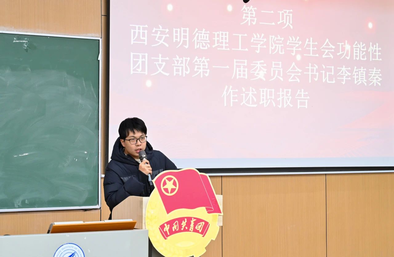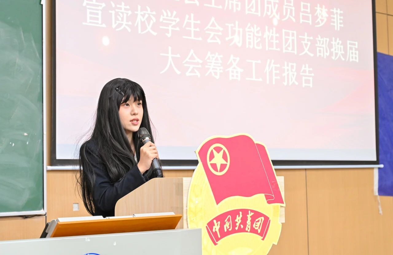 校学生会主席团成员吕梦菲宣读校学生会功能性团支部换届大会筹备工作报告。