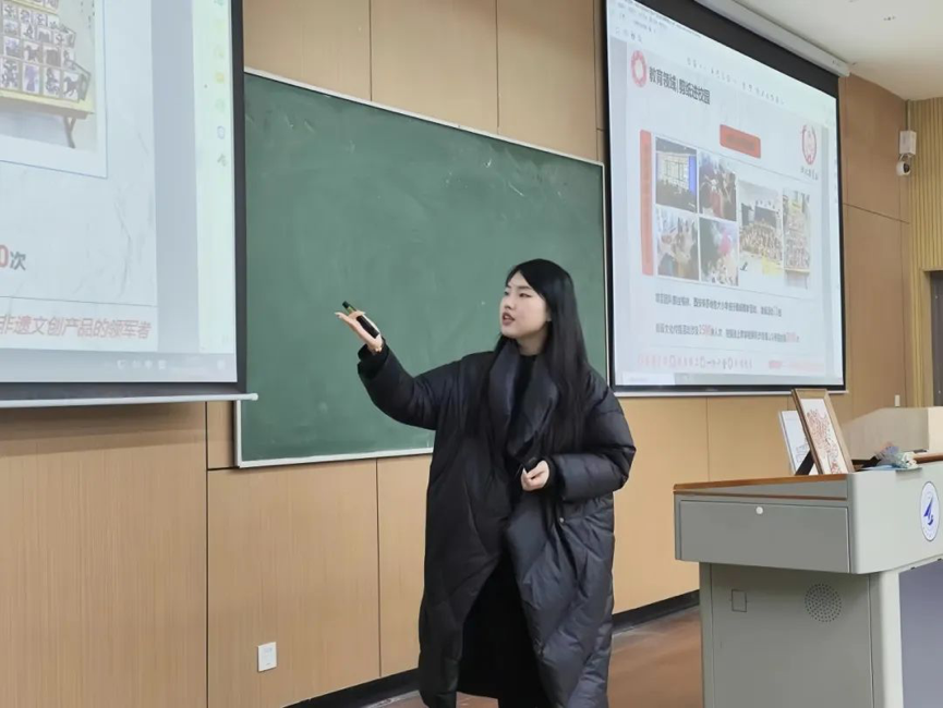 活动中,雷一言讲到,在延安革命根据地—中国保存最完整、面积最大的革命根据地,并在国家大力支持非物质文化遗产文化发展的背景下,他们以“雕花镂锦”为题材,在项目调研中,他们直击市场痛点,发现了销售商机。通过网络DIY定制剪纸,剪纸作品呈现多样化、多元素的特点,多个销售方式相互驱动以吸引顾客并增加销售额。