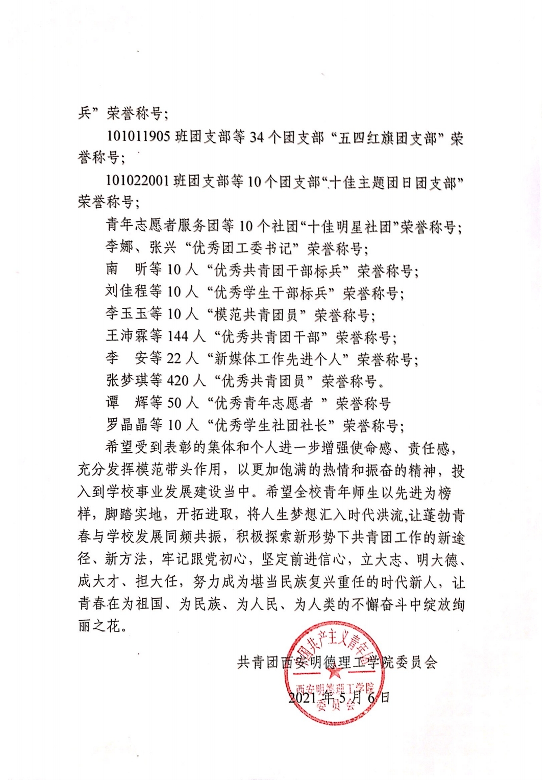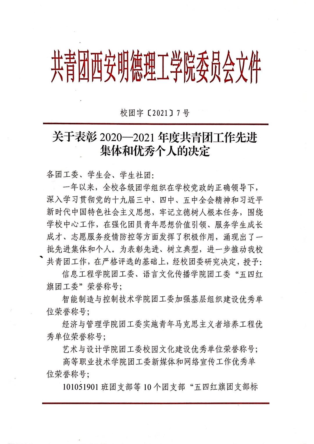 关于表彰2020—2021年度共青团工作先进集体和优秀个人的决定