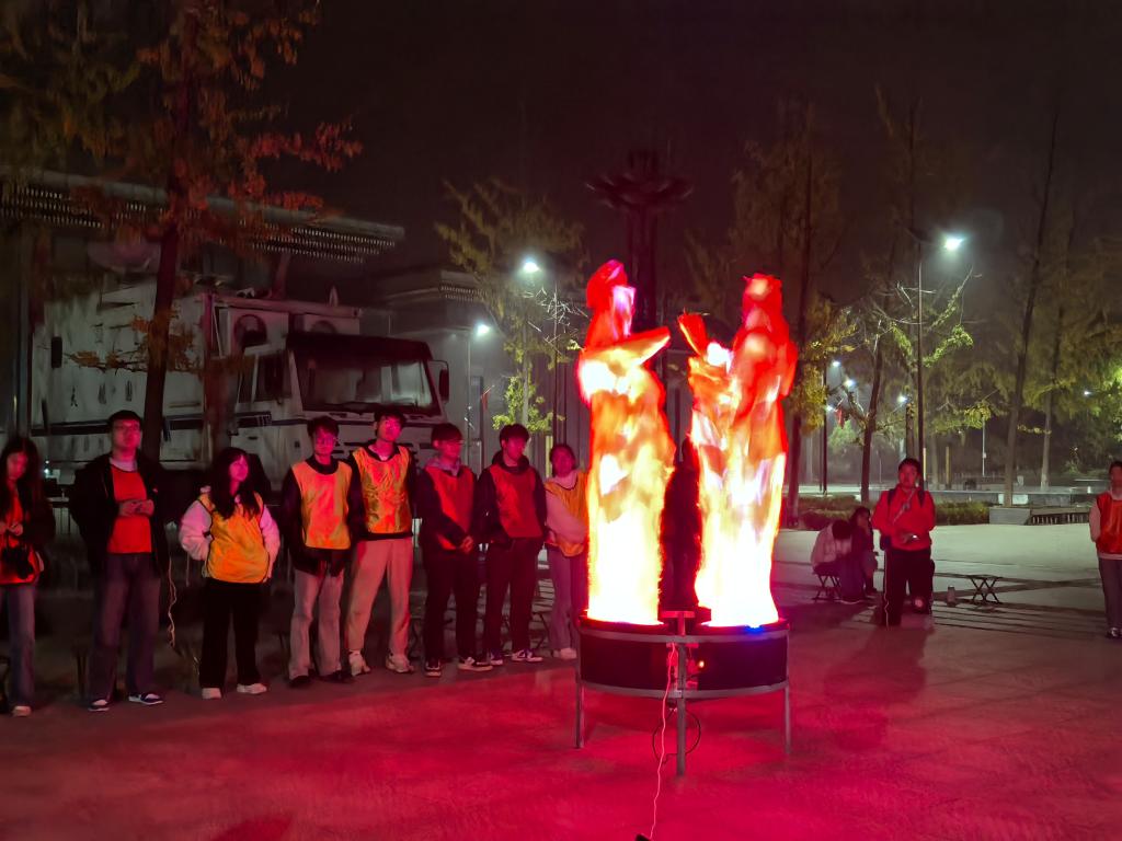 当夜幕降临,篝火晚会将现场氛围推向高潮。大家围绕着熊熊燃烧的篝火,大家由陌生到熟悉,欢快地歌声、笑声交织在一起,在夜空中回荡。跳跃的火苗映照着一张张青春洋溢的脸庞,现场热闹非凡。全体新任学生干部集体生日环节更是温馨满满,烛光在黑暗中闪烁,大家相互簇拥,许愿、吹蜡烛,这一刻,大家心紧紧相连,深深感受到这个大家庭的温暖。