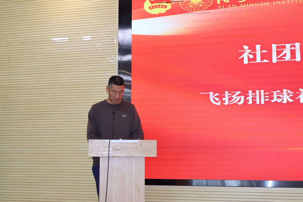 随后,飞扬排球社、滑板社指导教师严麦雄作为指导教师代表分享发言,他表示作为社团指导教师会严格遵守学校的社团管理办法,主动将自己的专业知识融入到社团工作中,正确引导学生参与活动,为社团发展和学生成长成才做出自己的贡献。