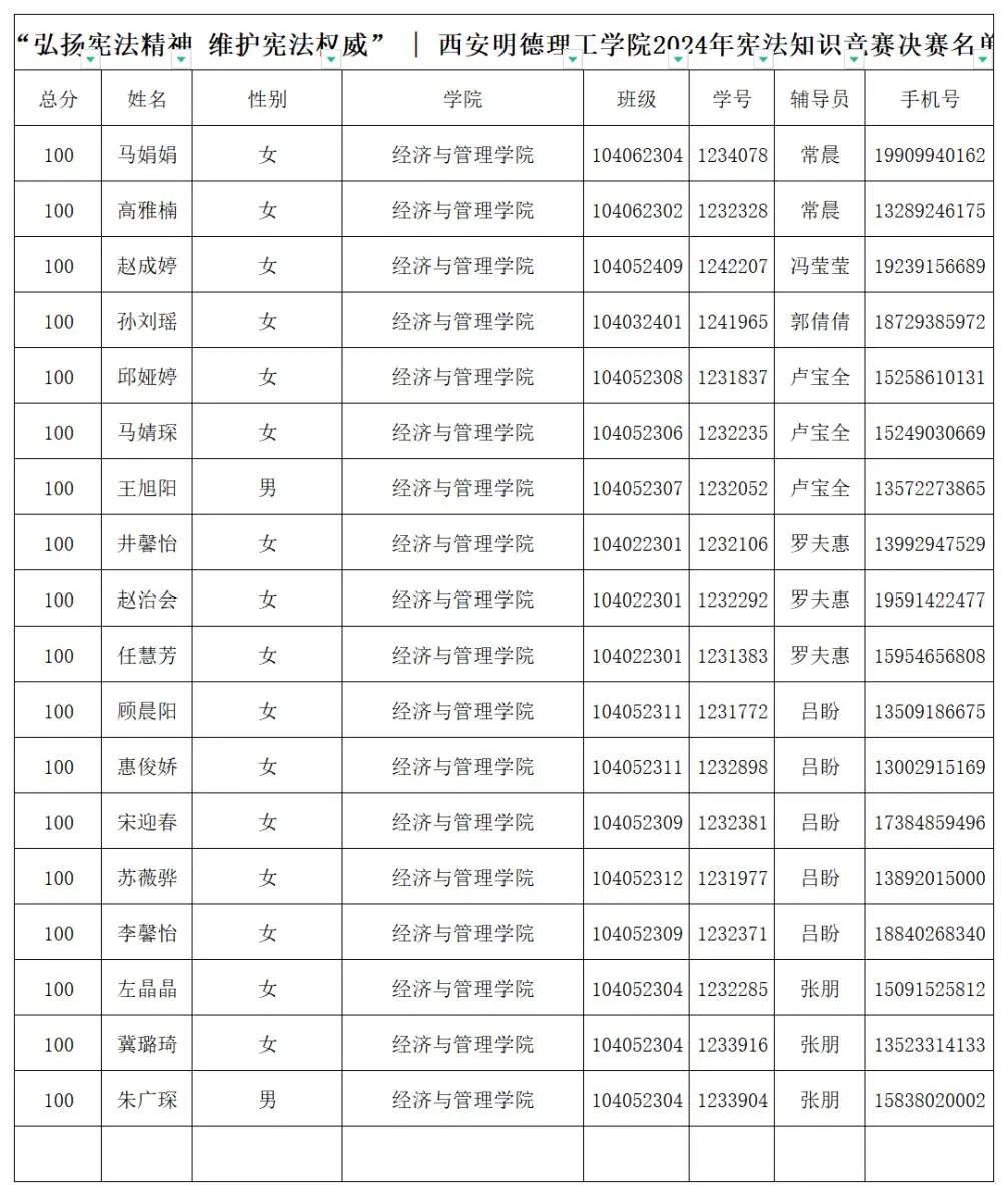 初赛采用线上答题的形式,将国家的根本制度、公民的权利与义务、宪法的地位和作用等多个核心内容融入题目中,经过对初赛(线上)答题情况的统计,基于分数排名及时间顺序综合考量,所确定的前100名参与决赛的同学!现将决赛(线下)名单公示如下: