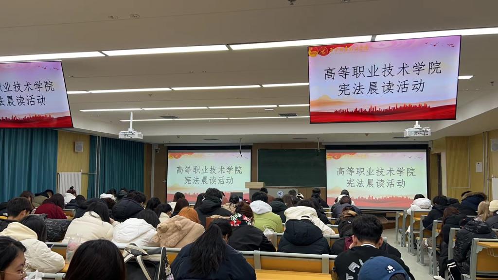 2023年12月4日是我国第十个国家宪法日。为深入学习贯穿党的二十大精神,贯彻落实习近平法治思想和习近平总书记关于宪法法治教育的重要指示精神,推动全校师生集中深入学习宣传宪法、弘扬宪法精神、维护宪法权威,做好宪法学习宣传和贯彻实施工作。12月4日上午9点,学校组织500余名师生参加了由教育部组织的第十届国家宪法日教育系统“宪法晨读”活动,部分师生通过普法网收看网络直播。