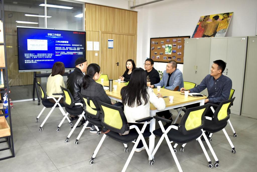 2023年3月7日星期二,陕西艺术职业学院双创中心副主任刘璐、影视学院副院长张敏、美术学院副院长王林奎一行前来我校创新创业学院考察交流,我院副院长崔岩和专职教师张科元、屈菲菲参加座谈,会议由崔岩主持。
