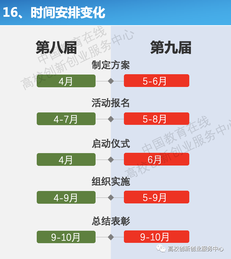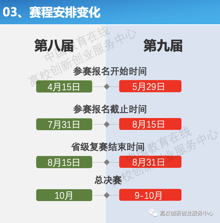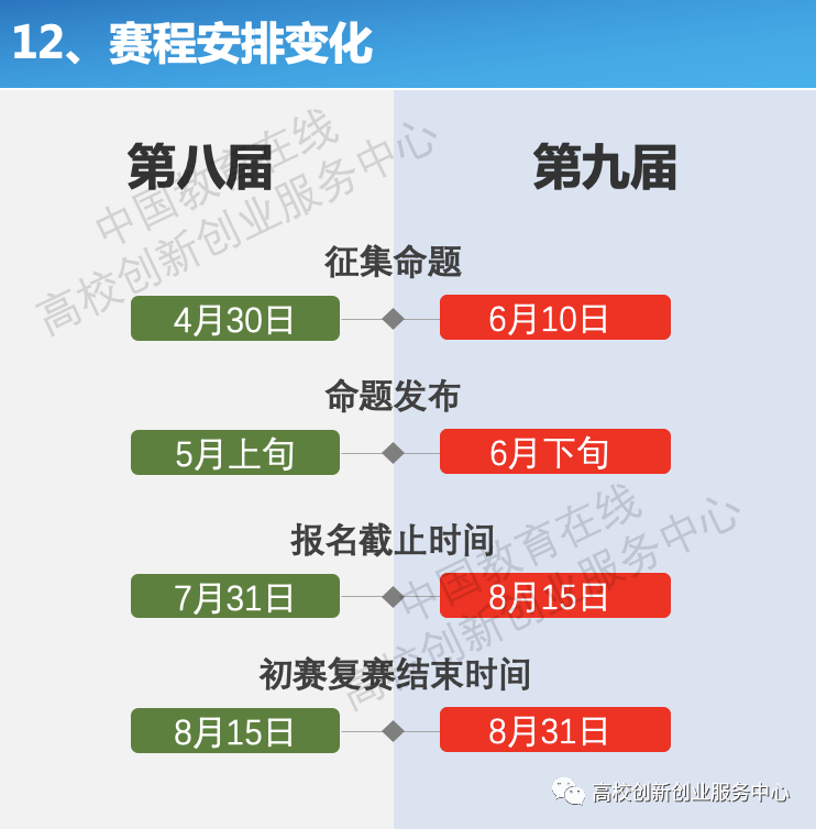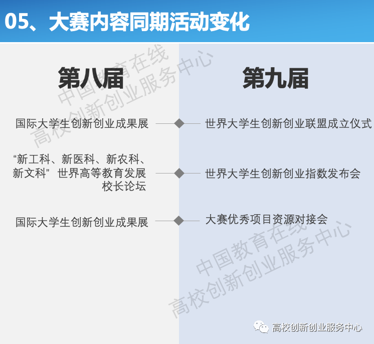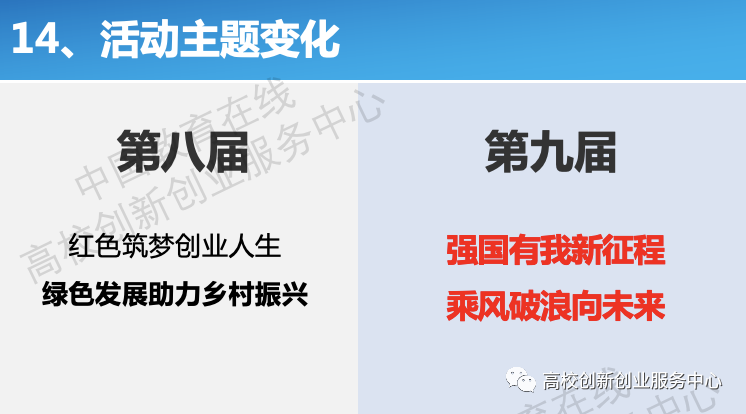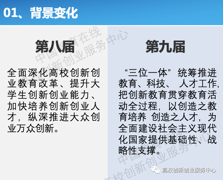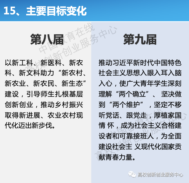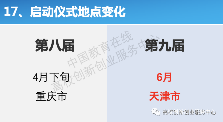 5月23日,《第九届中国国际“互联网+”大学生创新创业大赛通知》正式发布,根据通知内容,本届大赛有以下几点变化: