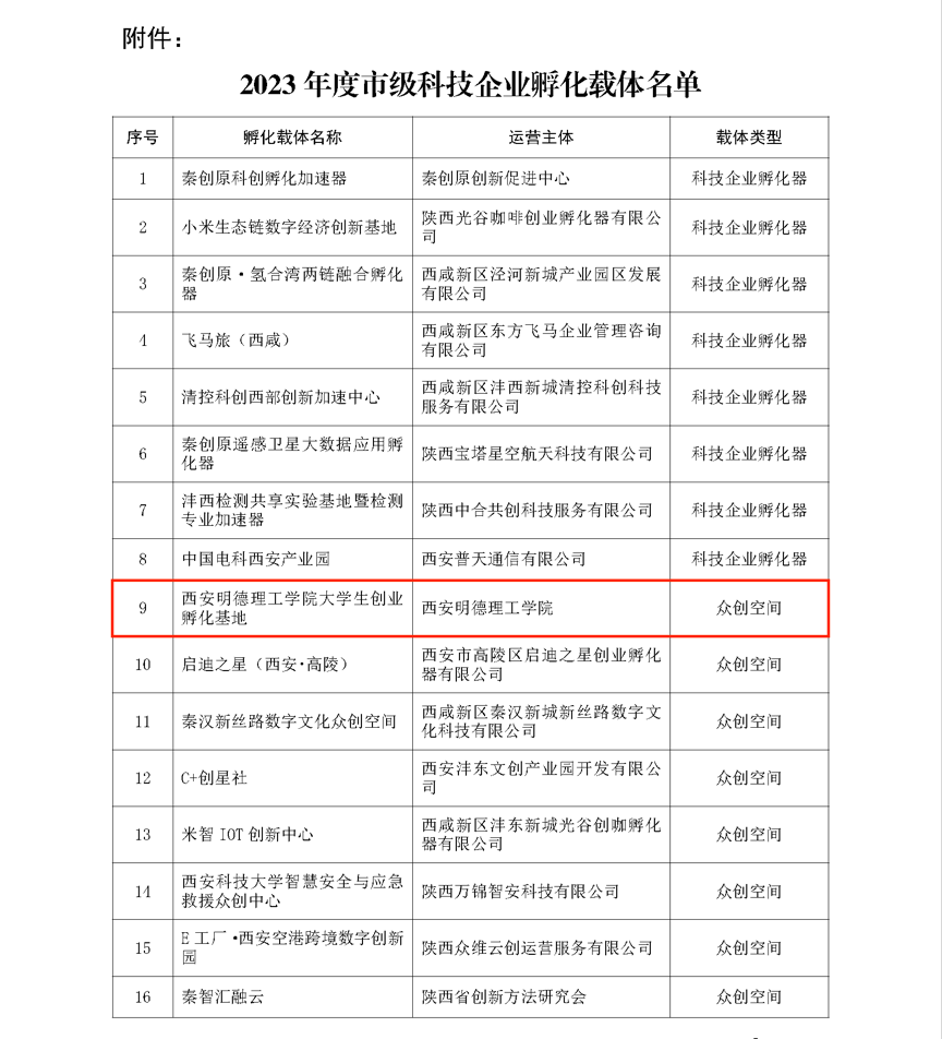 近日,西安市科学技术局关于公布2023年度市级科技企业孵化载体名单的通知(市科发[2024]3号)公布了市级众创空间名单,半岛(中国)一站式服务平台“大学生创新创业孵化基地”成功获批市级众创空间,开启了学校创新创业教育工作的新篇章。