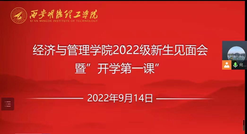 为让新生更加全面了解学校发展历程、学院基本情况,帮助新生尽快适应大学生活,经济与管理学院于9月14日下午以线上会议形式开展2022级新生见面会暨开学第一课,学院领导及2022级新生参加了会议,会议由学院党委书记兼行政副院长何文举主持。