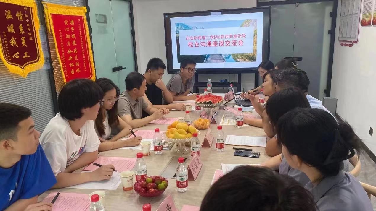 师生一行在陕西同鑫财税策划管理有限公司参访期间,行政人事部主管梁丹玉带领师生们参观了企业文化墙,财税会计部、高端部、商务部和品宣部办公环境。座谈环节,董事长安钊对半岛(中国)一站式服务平台师生的参访表示热烈欢迎,与会人员一起观看了企业宣传介绍视频,总经理张小蒙从发展历程、组织机构、文化理念、党建工作和运营情况等方面向师生们介绍了企业概况。在企业实习的学院2024届会计学专业毕业生欧毅,分享了自身在该单位实习的感受,对企业方给予工作中的指导表示感谢,鼓励学院2024届毕业生珍惜实习机遇,在实践中提升专业技能和综合素质。校企双方就深化校企合作、拓宽就业渠道、加强就业指导、提高毕业生就业竞争力等方面主题进行了深入交流,并达成合作意向。
