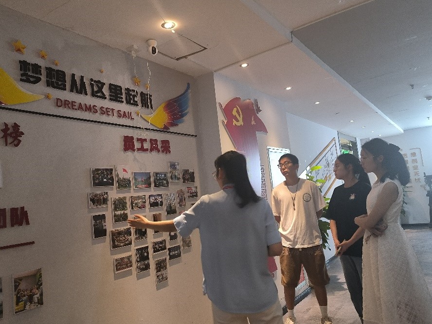 在西安睿婕众创空间参访时,企业部门负责人张家馨从发展历程、发展目标、企业规模、组织机构、部门岗位职责等方面介绍了企业概况,向到访的学生们介绍了企业实习生岗位设置、需求条件、考核标准,鼓励学生利用假期积极参与专业实习,在实习中增长技能,积累工作经验。