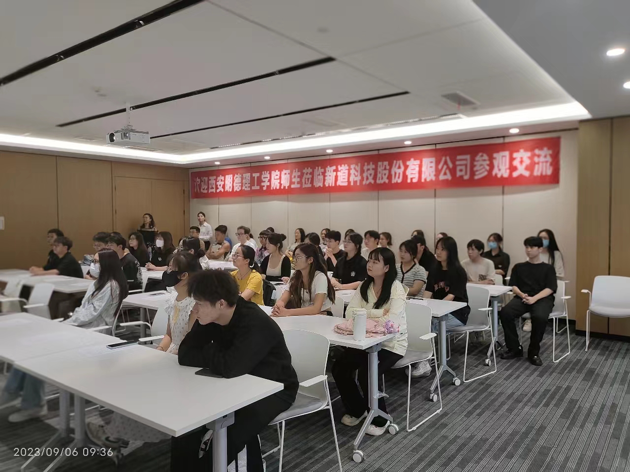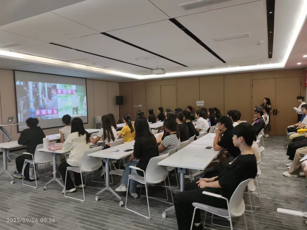 在研习过程中,用友集团新道科技有限公司西北大区总经理孙总和负责人王文博对学院师生一行表示热烈欢迎。并带领同学们集体观看了集团宣传片。