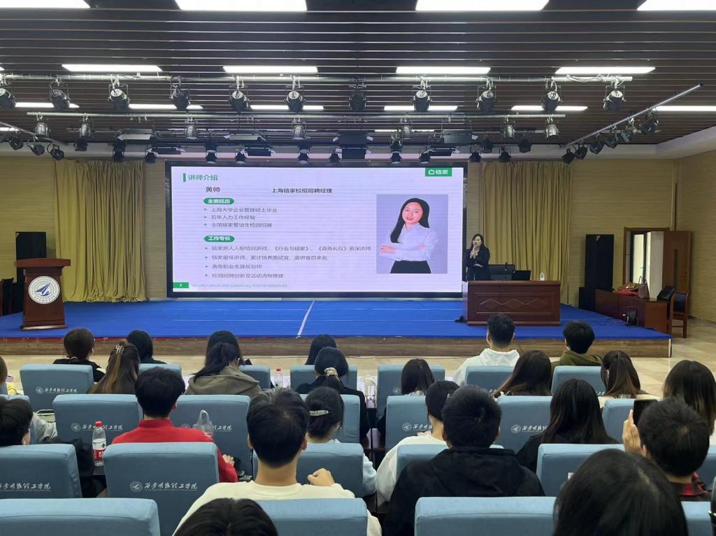 上海链家校招招聘经理黄帅结合当前毕业生就业形势、如何制作一份优秀简历、STAR法则面试技巧、做好职业规划实现人生目标等四个方面向现场学生做了就业指导,鼓励毕业生抢抓校园招聘机遇,合理规划求职目标及职业生涯,增强求职信心。